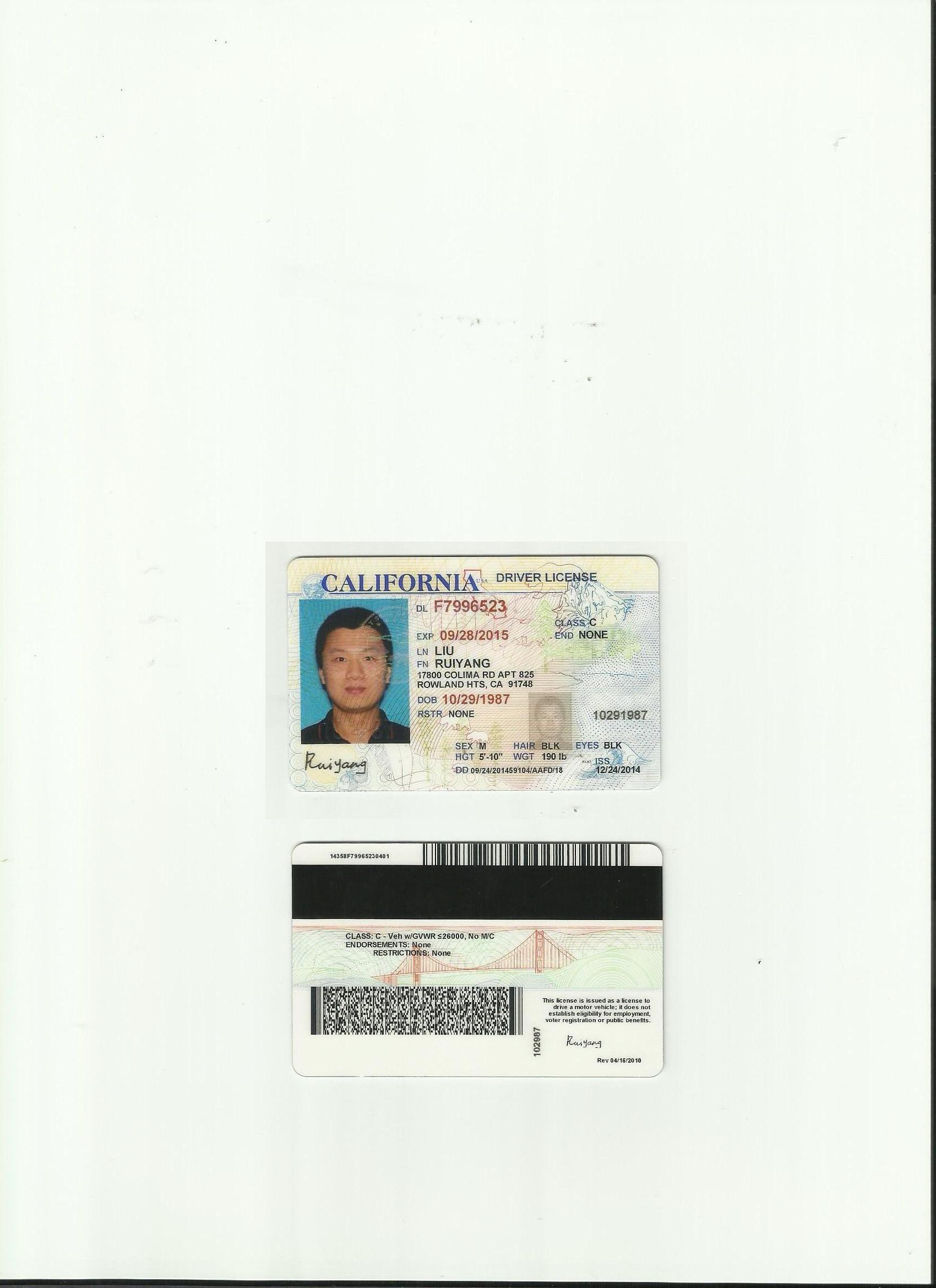 美國加州駕照翻譯模版