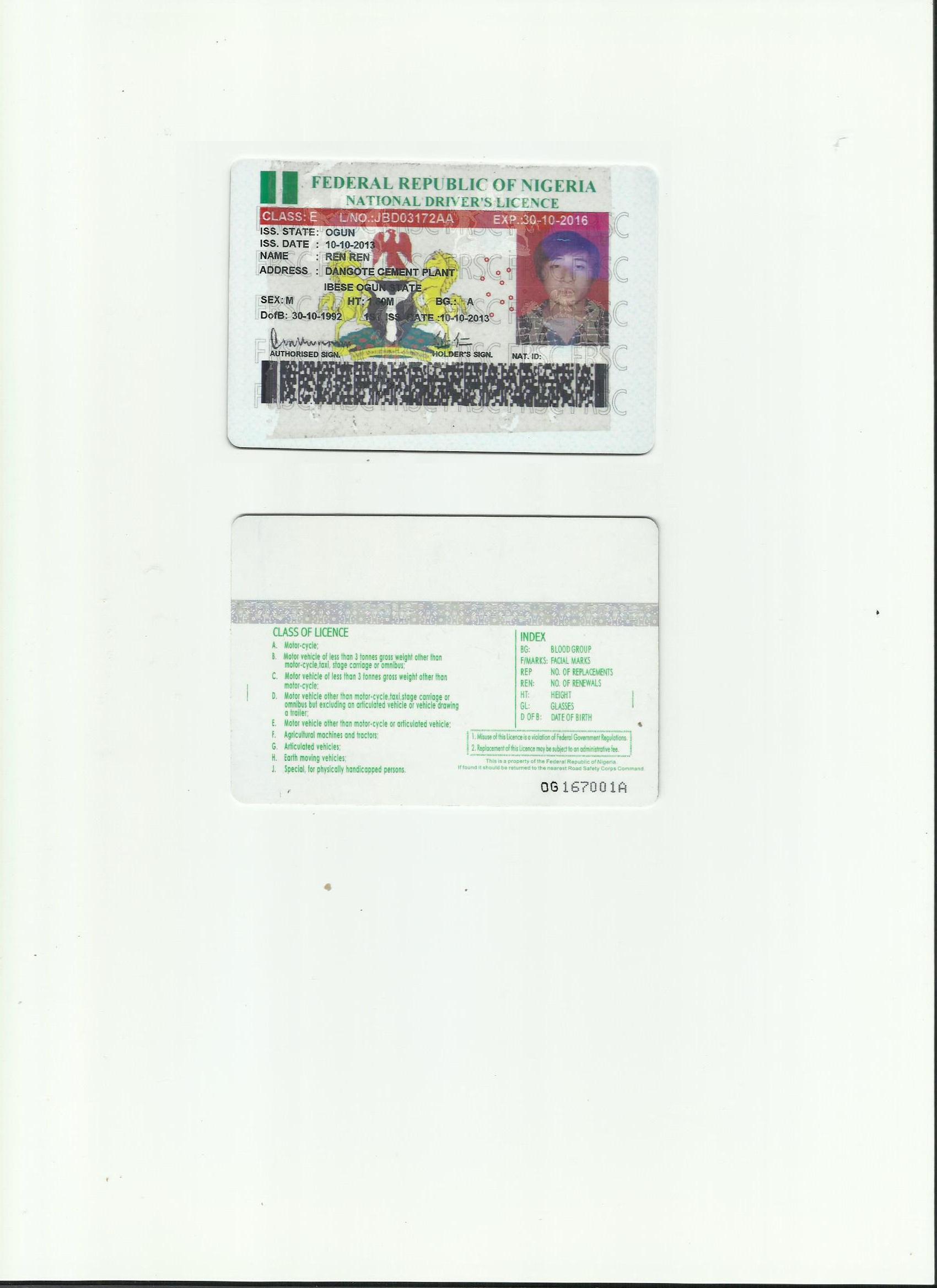 尼日利亞駕照翻譯模版-咸陽市車管所認可翻譯機構