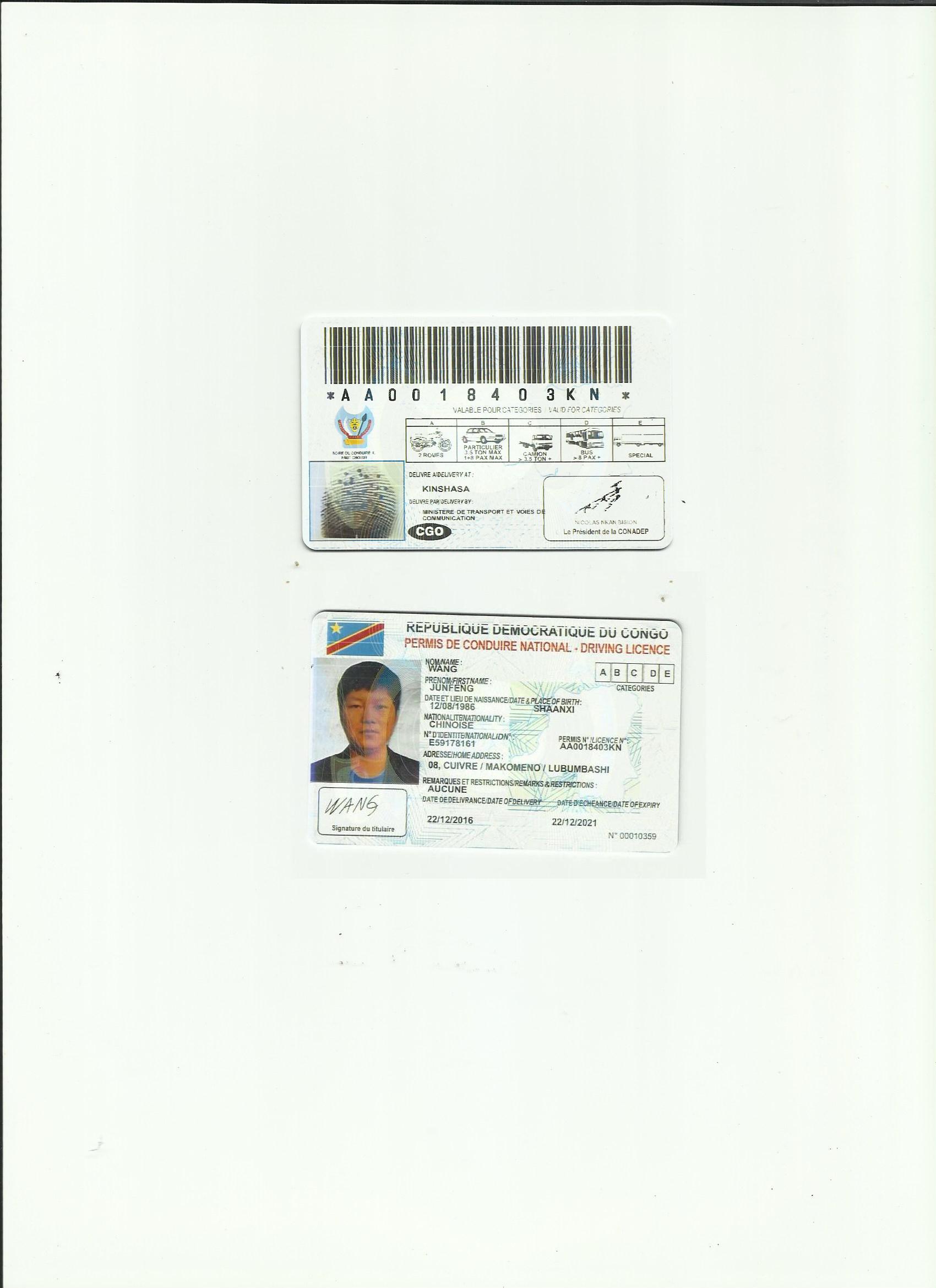 剛果金駕照翻譯模版-咸陽市車管所認可翻譯機構-咸陽市國外駕照翻譯