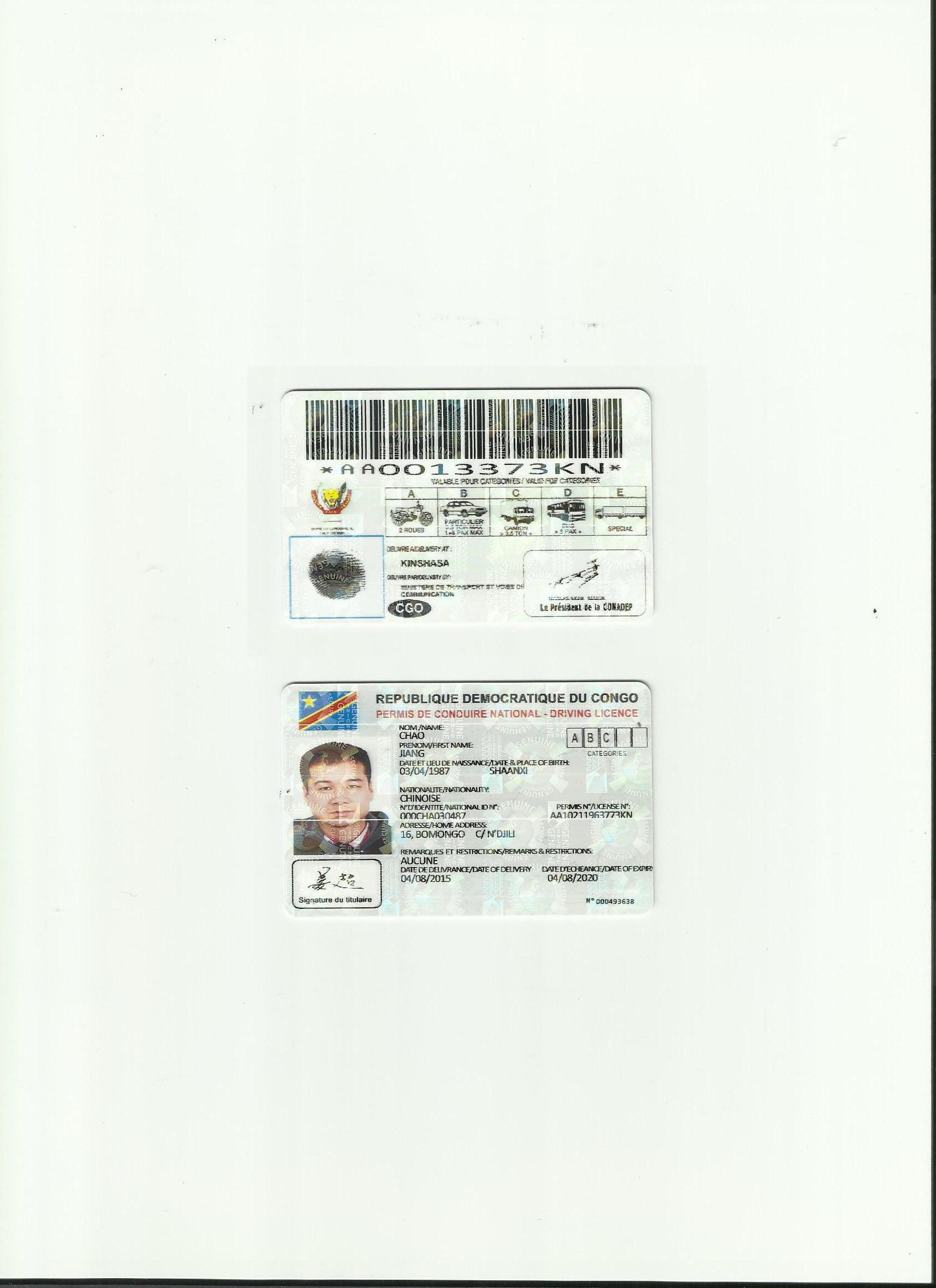 剛果金新版駕照翻譯模版-咸陽市車管所認可翻譯機構-咸陽市周邊郊縣