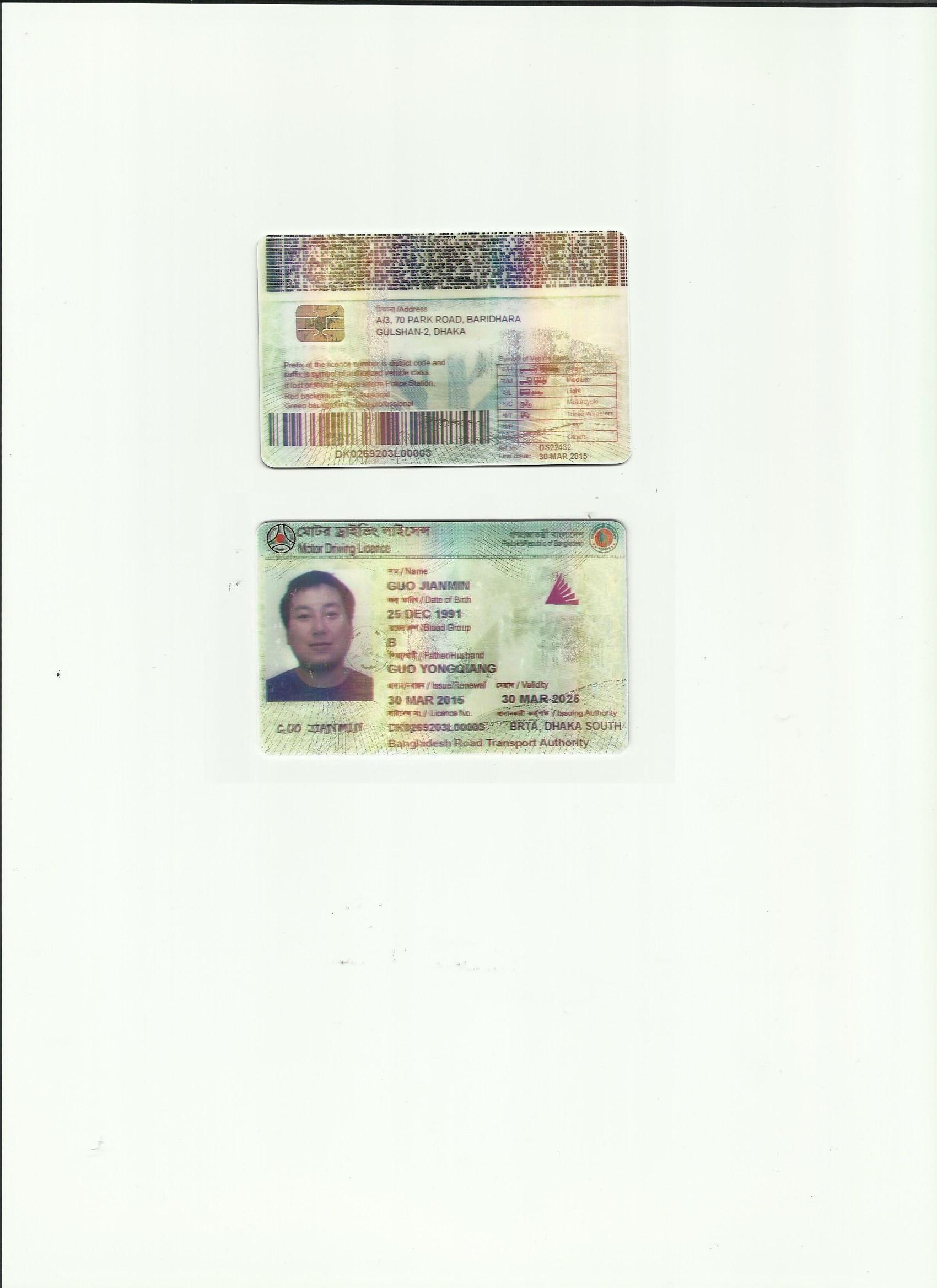 孟加拉駕照翻譯模版-咸陽市車管所認可翻譯公司