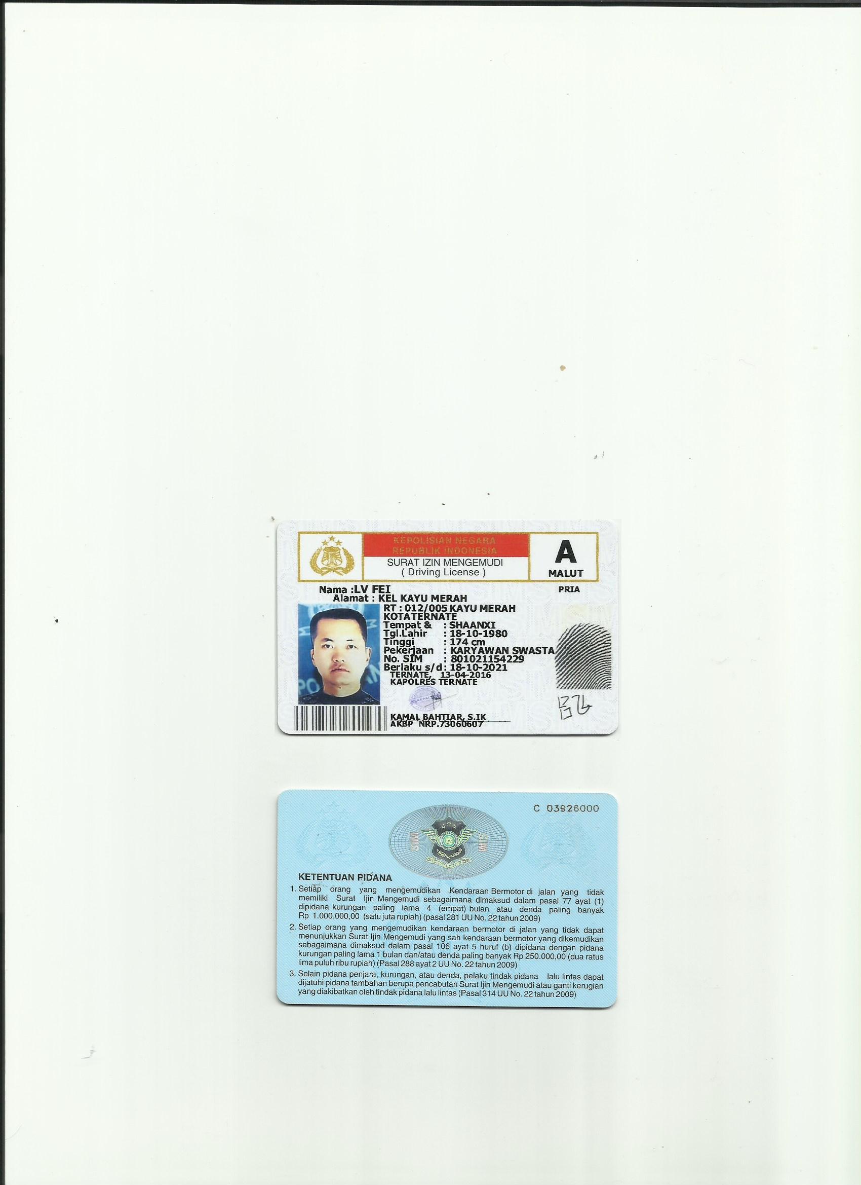 印尼駕照翻譯模版-咸陽市車管所認可翻譯機構