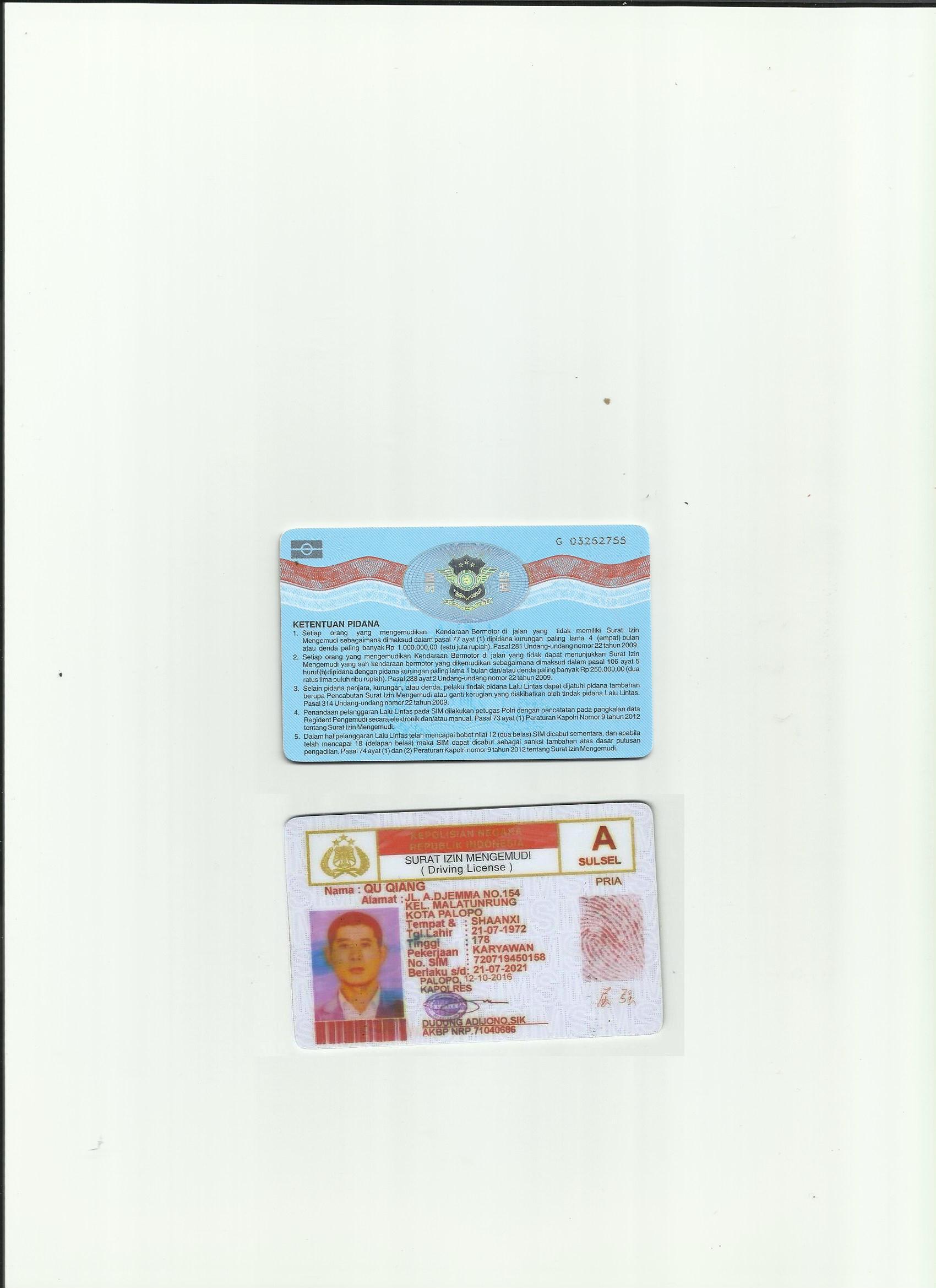 印尼駕照翻譯模版-咸陽市車管所認可翻譯機構