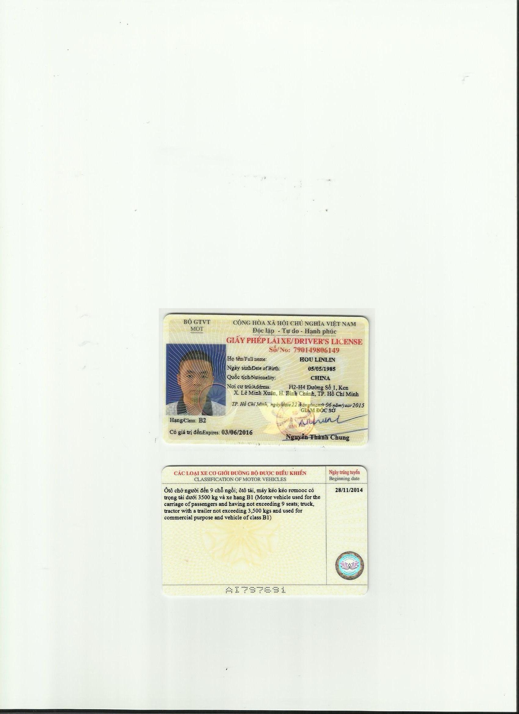 越南駕照翻譯模版-咸陽車管所認可