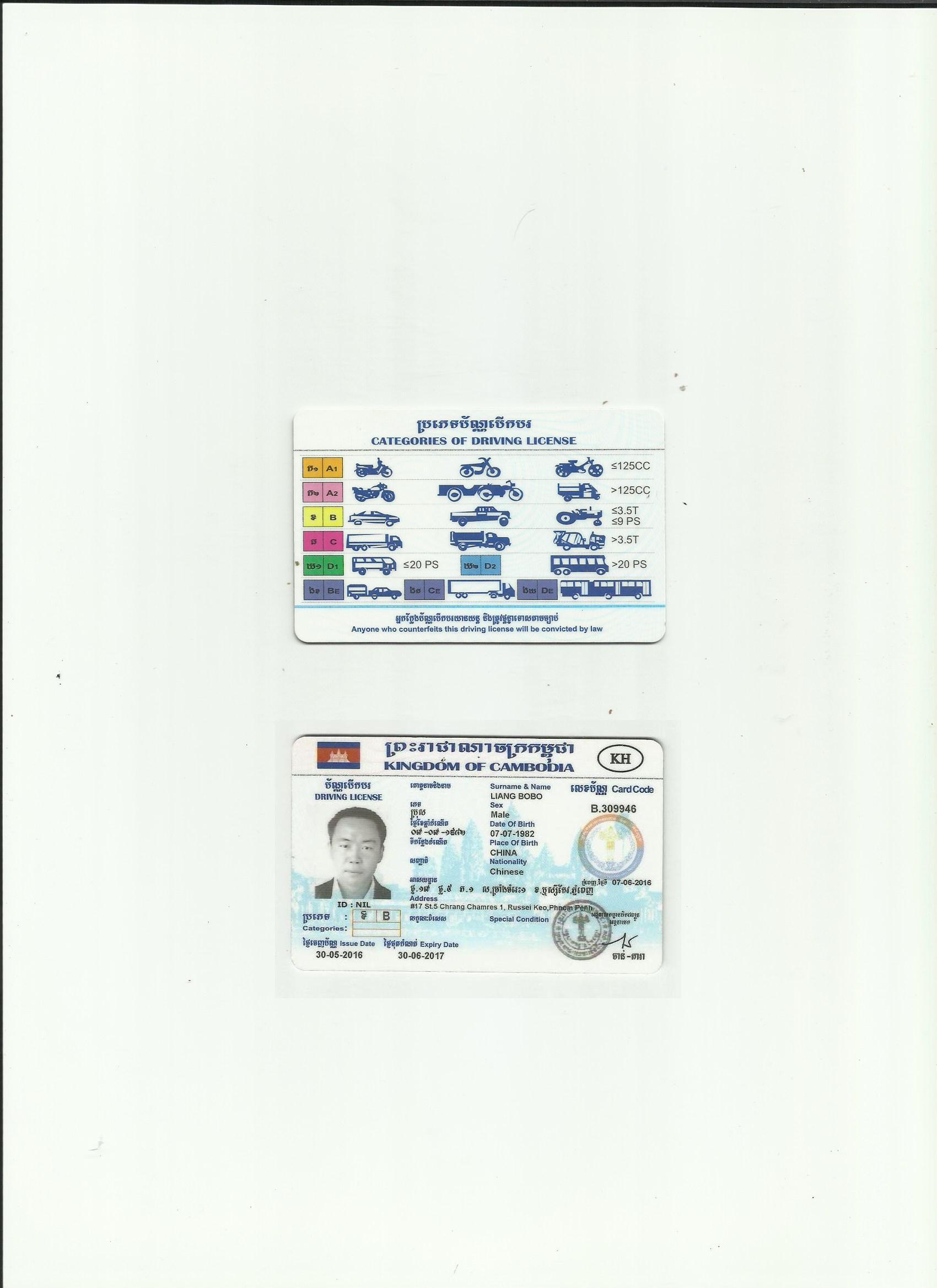 柬埔寨駕照翻譯模版-咸陽市車管所認可翻譯機構
