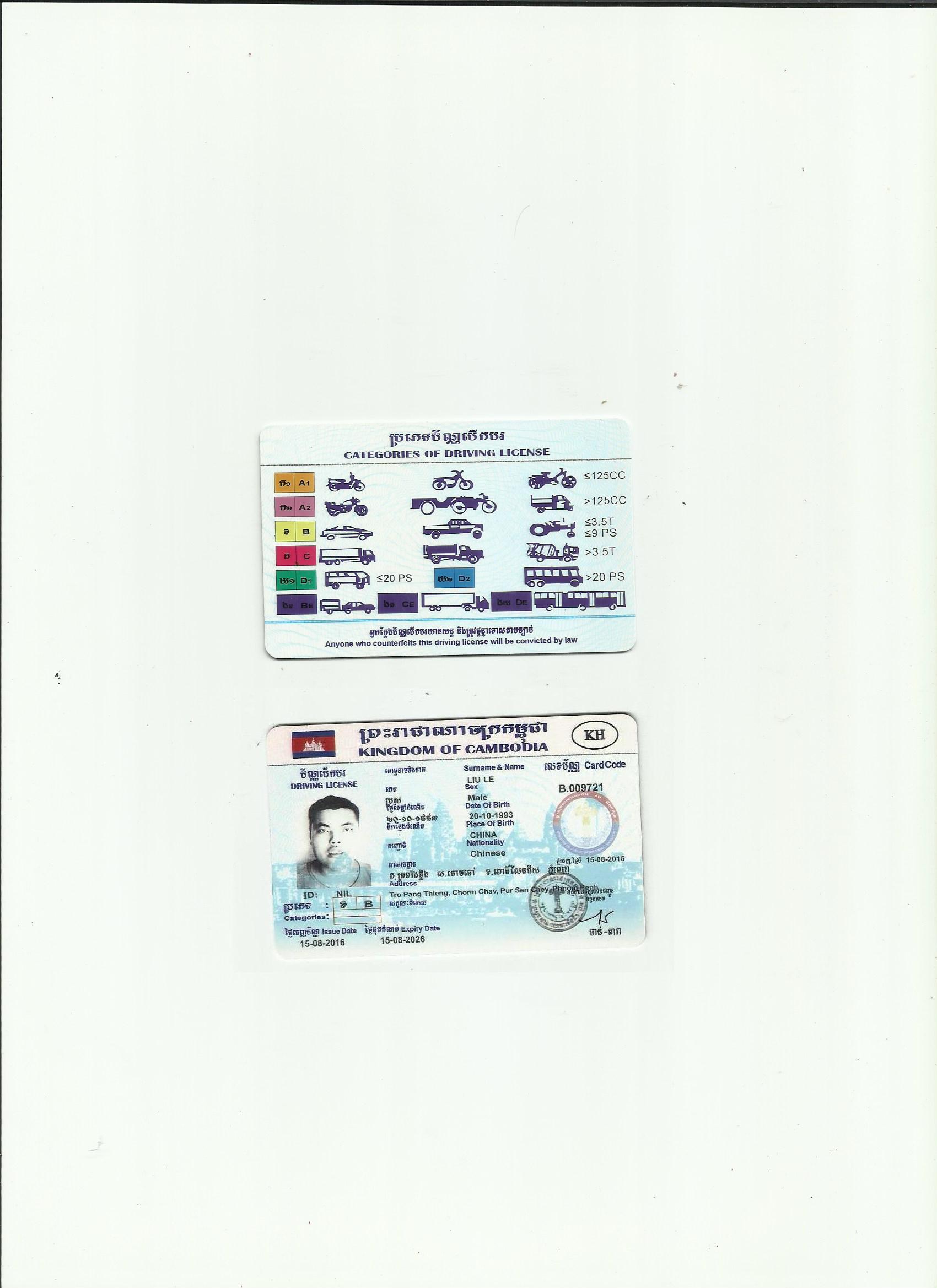 柬埔寨駕照翻譯模版-咸陽市外籍駕照翻譯-咸陽市車管所認可翻譯機構