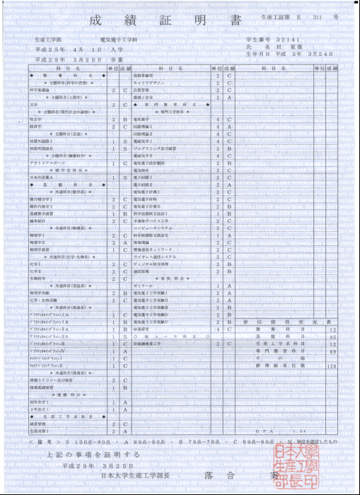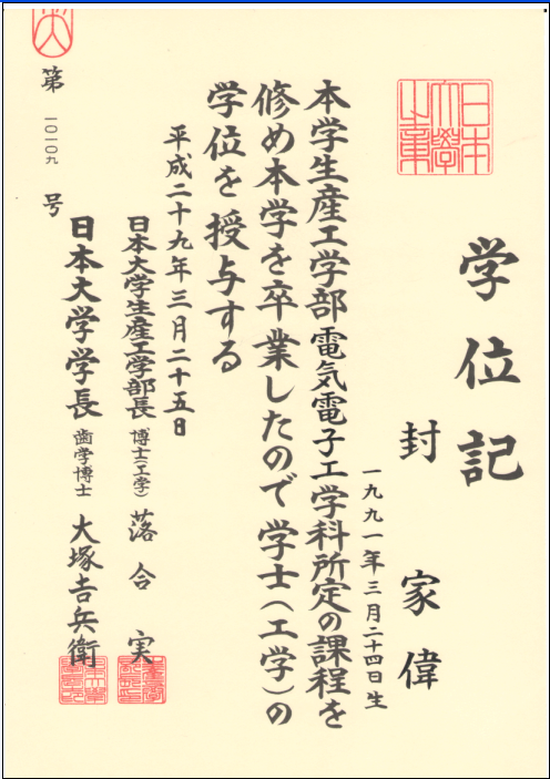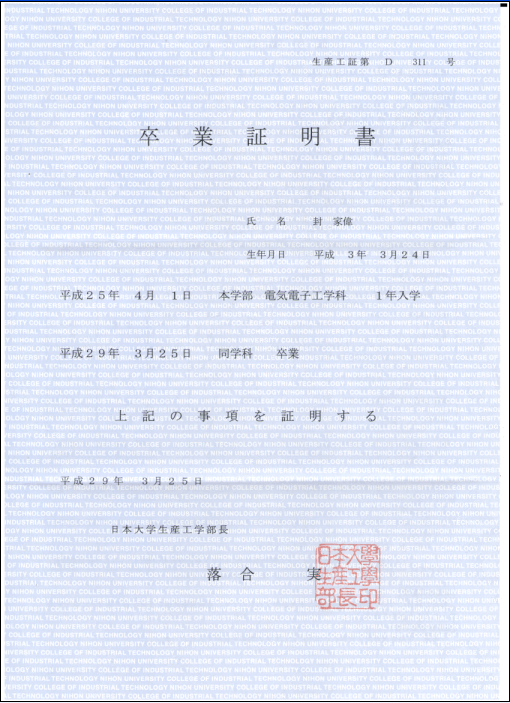 日本大學畢業證件翻譯模版-咸陽市阿博爾翻譯公司-認可翻譯機構-學位認證、翻譯