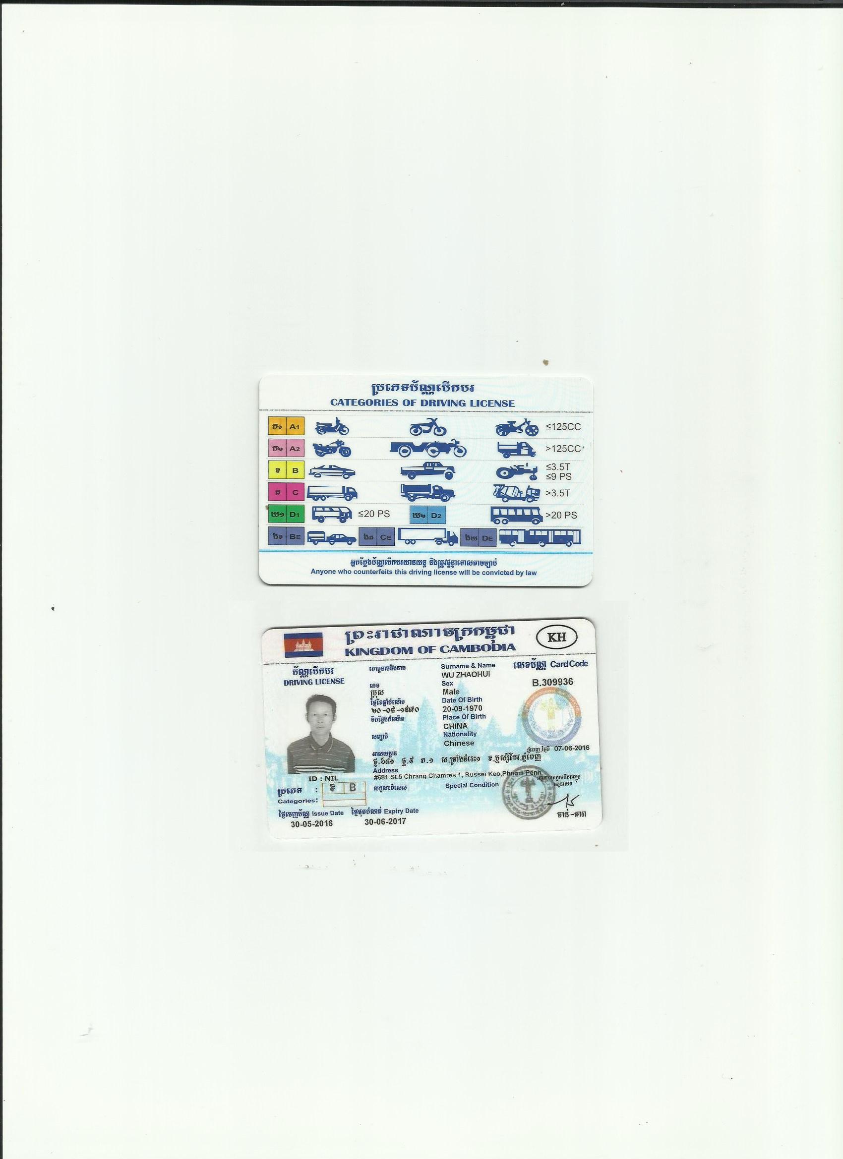 咸陽市車管所指定翻譯機構-柬埔寨駕照翻譯模版