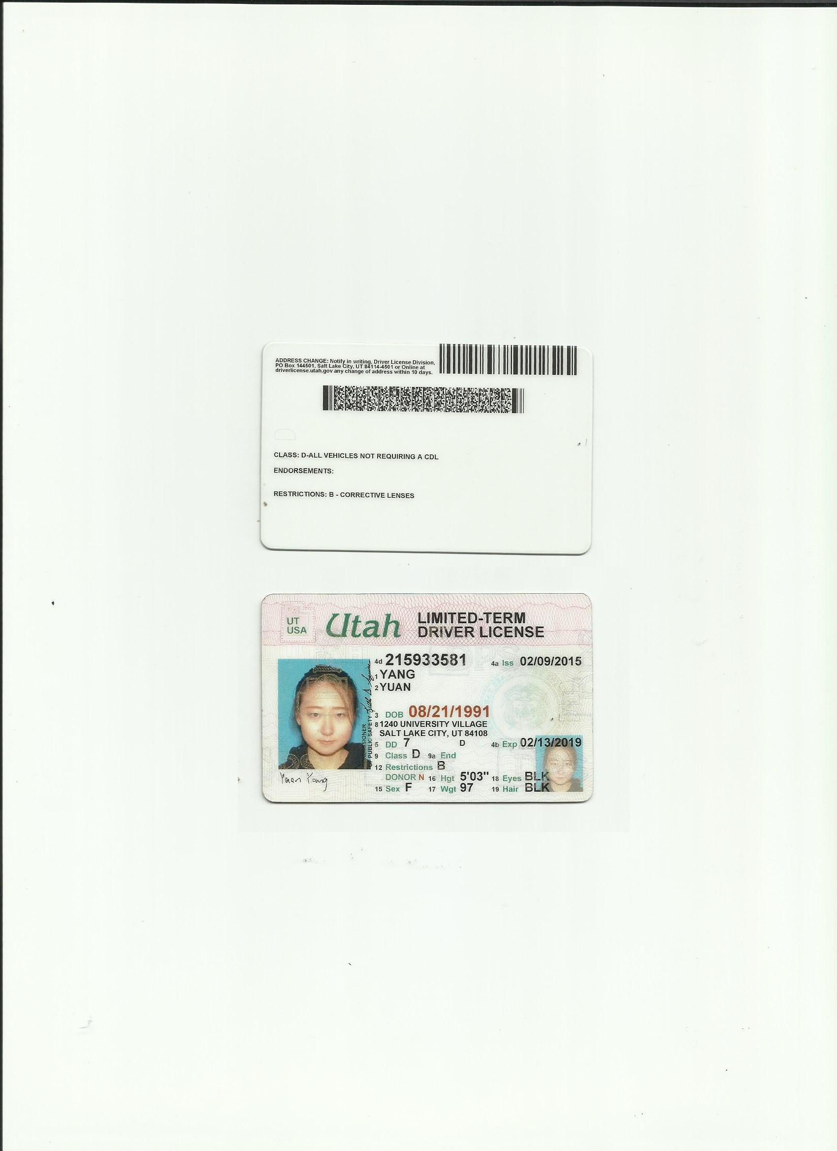咸陽車管所認可翻譯公司-美國猶他州駕照翻譯模版
