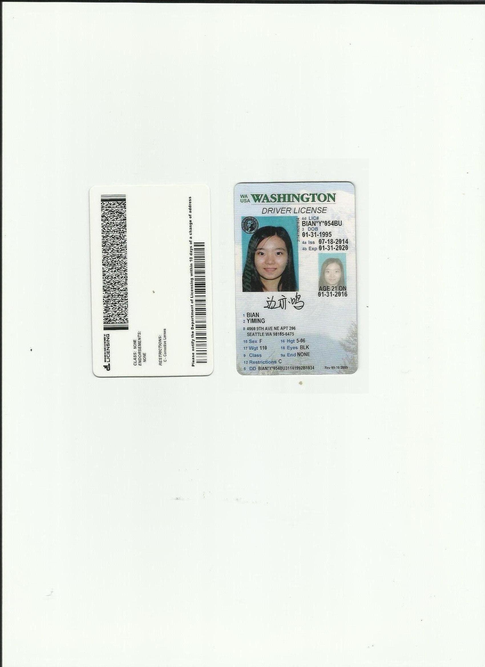 咸陽車管所認可翻譯機構-美國華盛頓州駕照翻譯模版