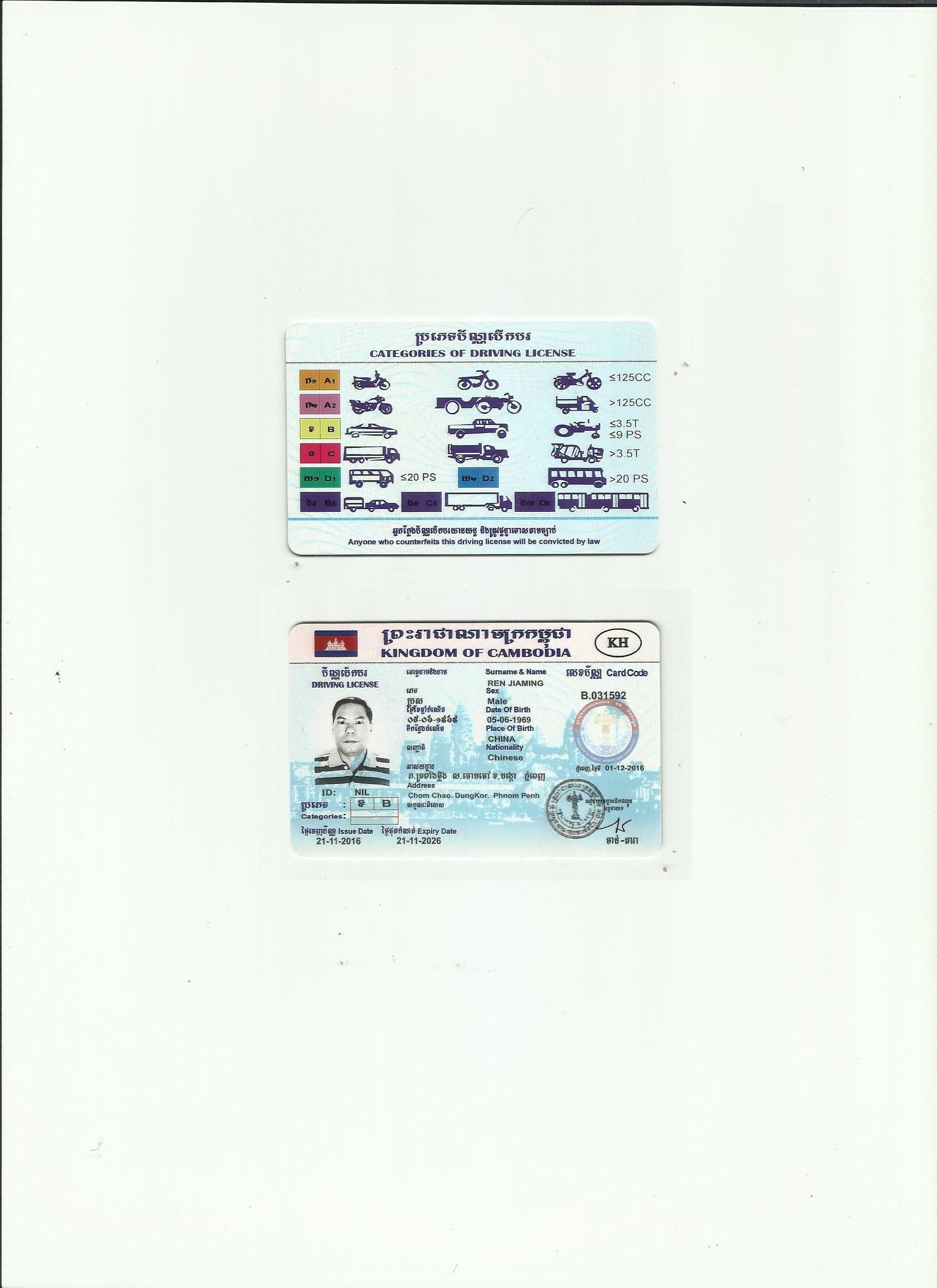 外籍駕照翻譯模版-柬埔寨王國駕照翻譯-咸陽市車管所認可翻譯機構