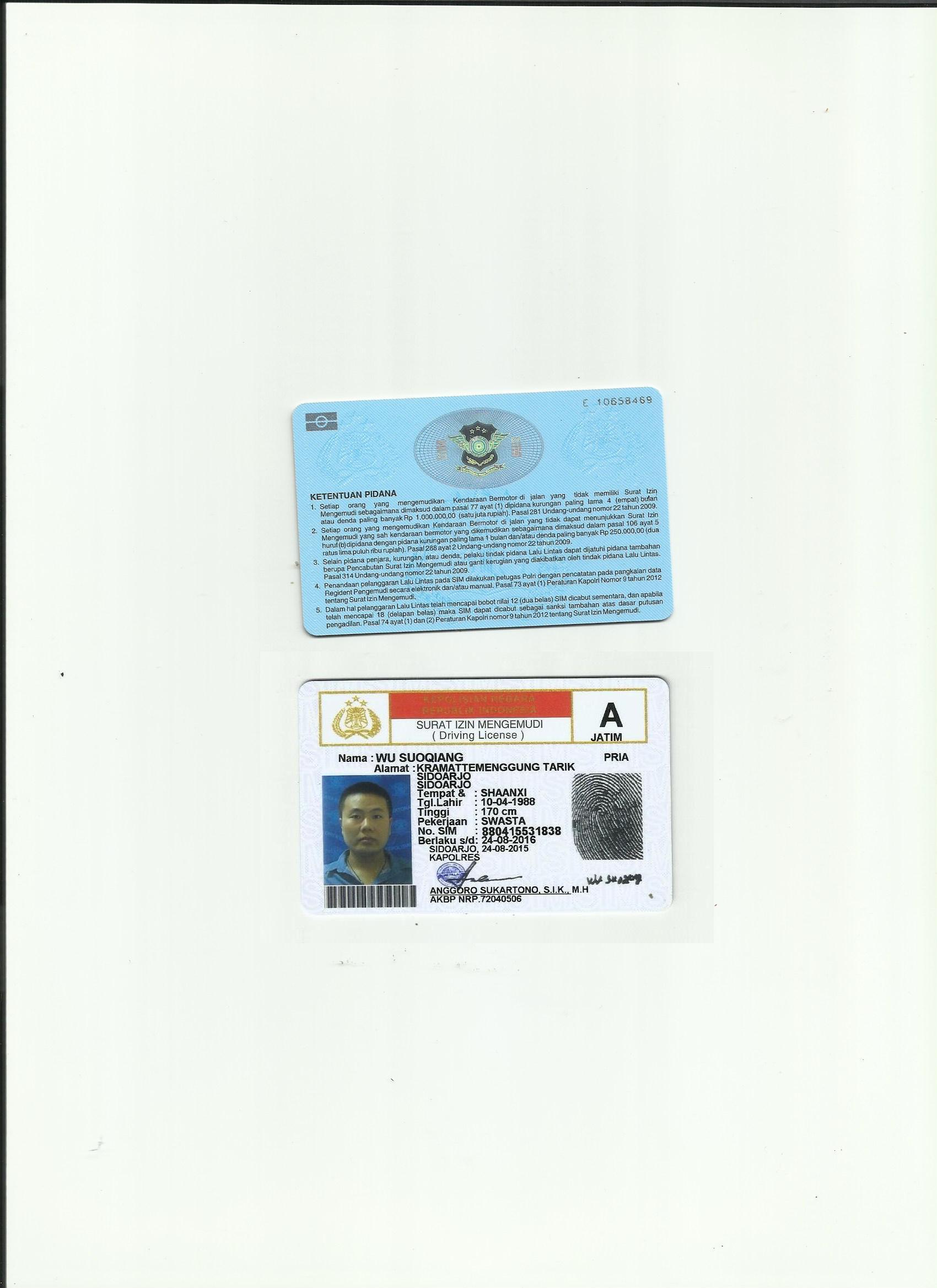 咸陽翻譯公司-印尼駕照翻譯模版
