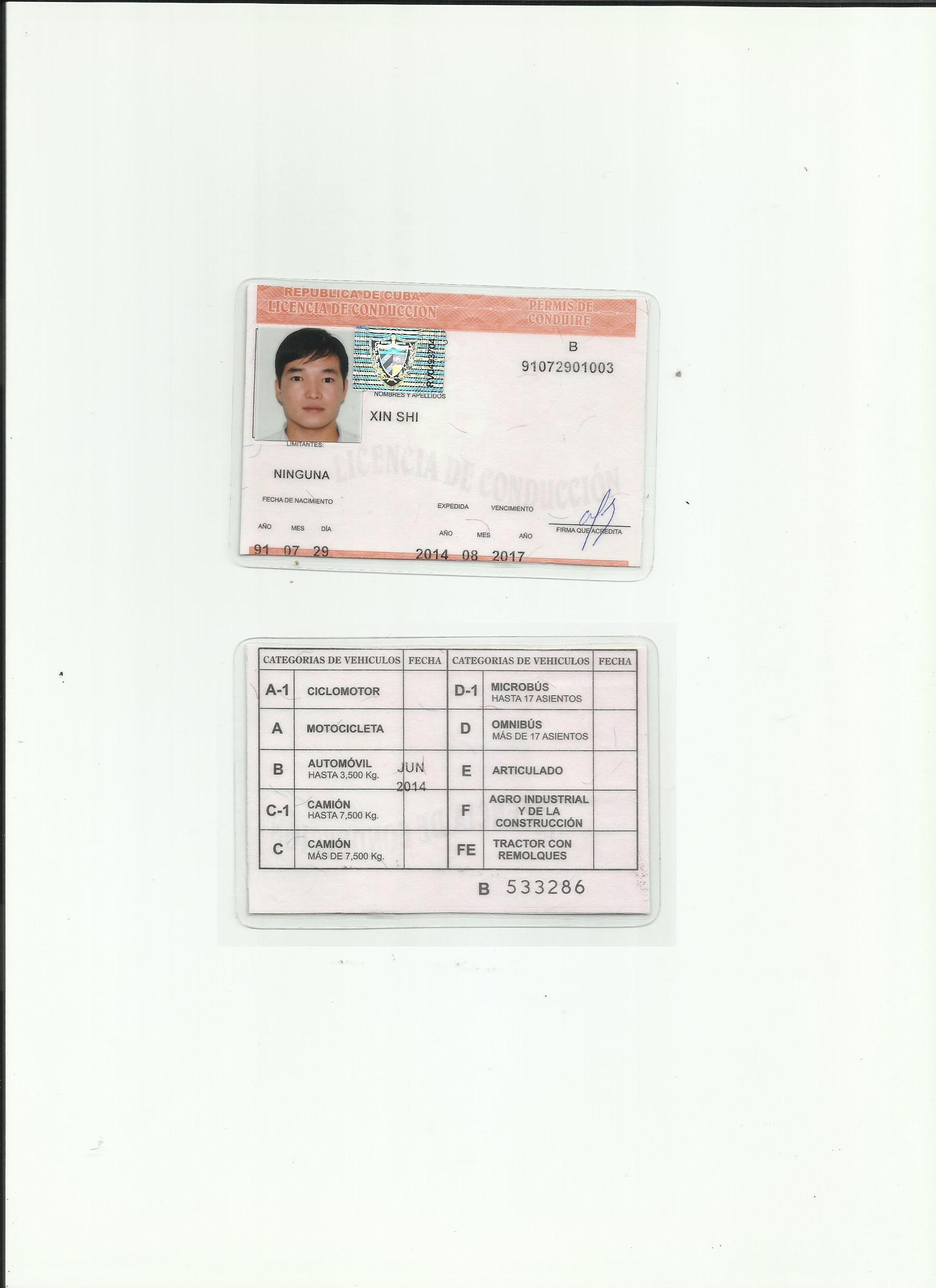 北美洲-古巴駕照翻譯模版-咸陽市車管所認可翻譯機構-咸陽外籍駕照翻譯公司